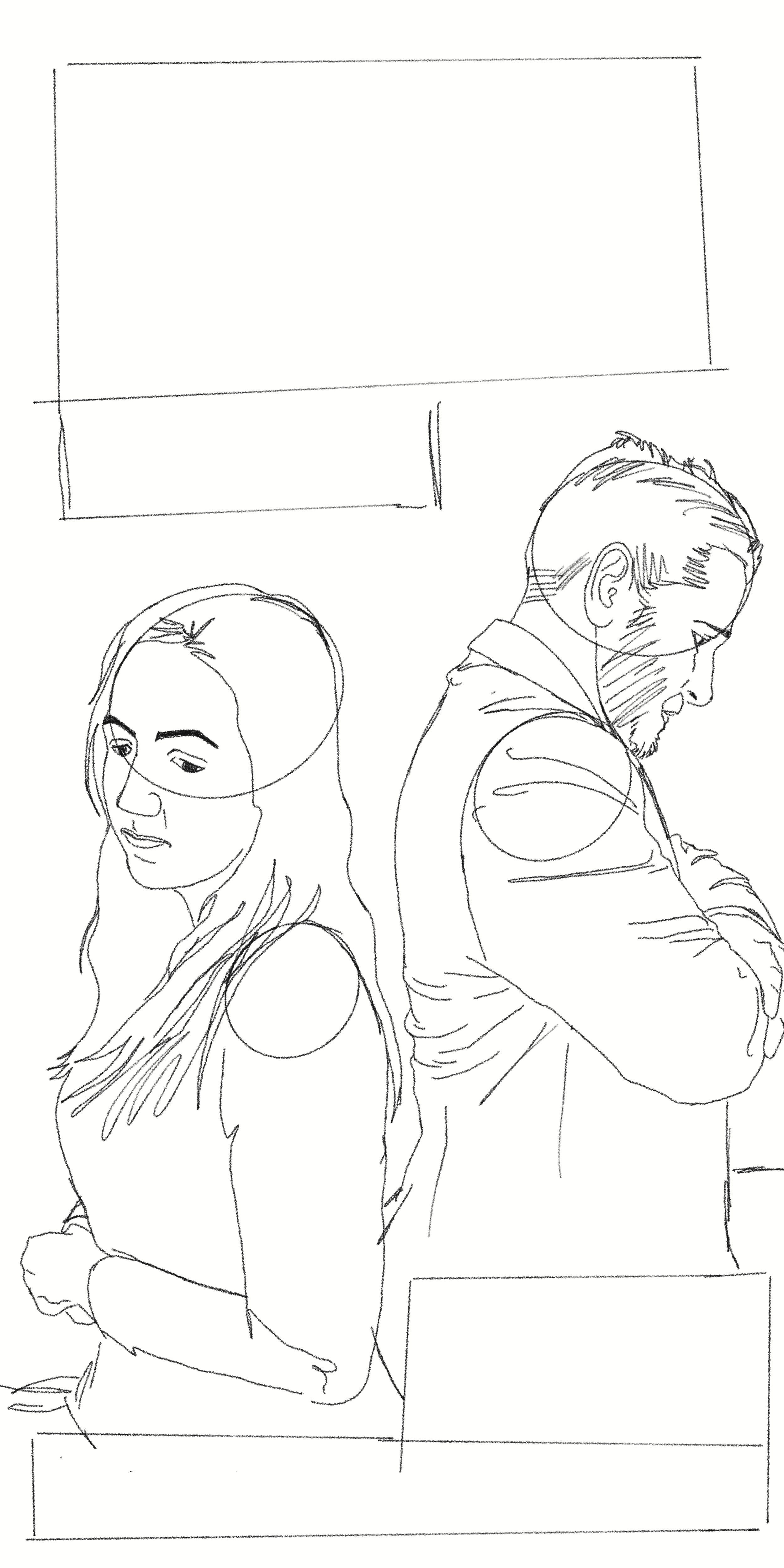 I continued to simplify the lines in the figures- this image is in the middle of that process. The simplification and negative space get pushed further to aline thematically with the film.